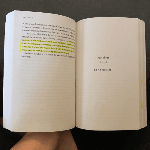 Die Folgen von schlechter Atemtechnik sind weitreichend. Nestor zitiert Studien, nach denen 40 % der Menschen chronisch verstopfte Nasen haben und die Hälfte regelmäßig durch den Mund atmet. Unser moderner Lebensstil und die viel weichere Ernährung (yep, Smoothies, Weißbrot & Co.) verändern Kiefer- und Kopfstruktur, verengen die Atemwege und führen zu Problemen wie verstopfter Nase, Schnarchen, Keuchen, Asthma oder Allergien. Laut Breath sind das keine normalen Begleiterscheinungen, sondern Teil einer „Fehlentwicklung“ in unserer Evolution.